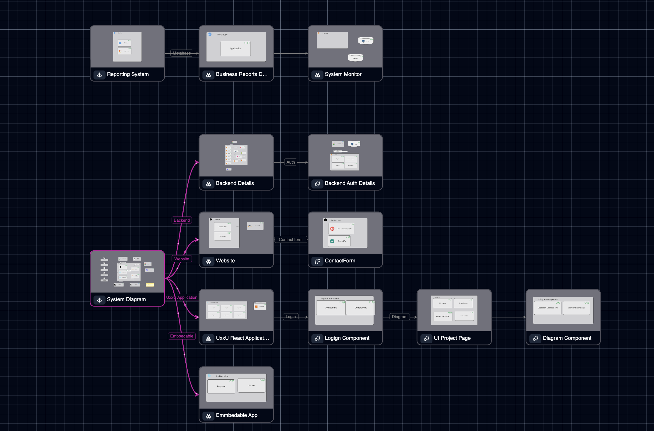 Instead of forcing users to mentally reconstruct how diagrams relate, Uxxu makes those relationships visible.